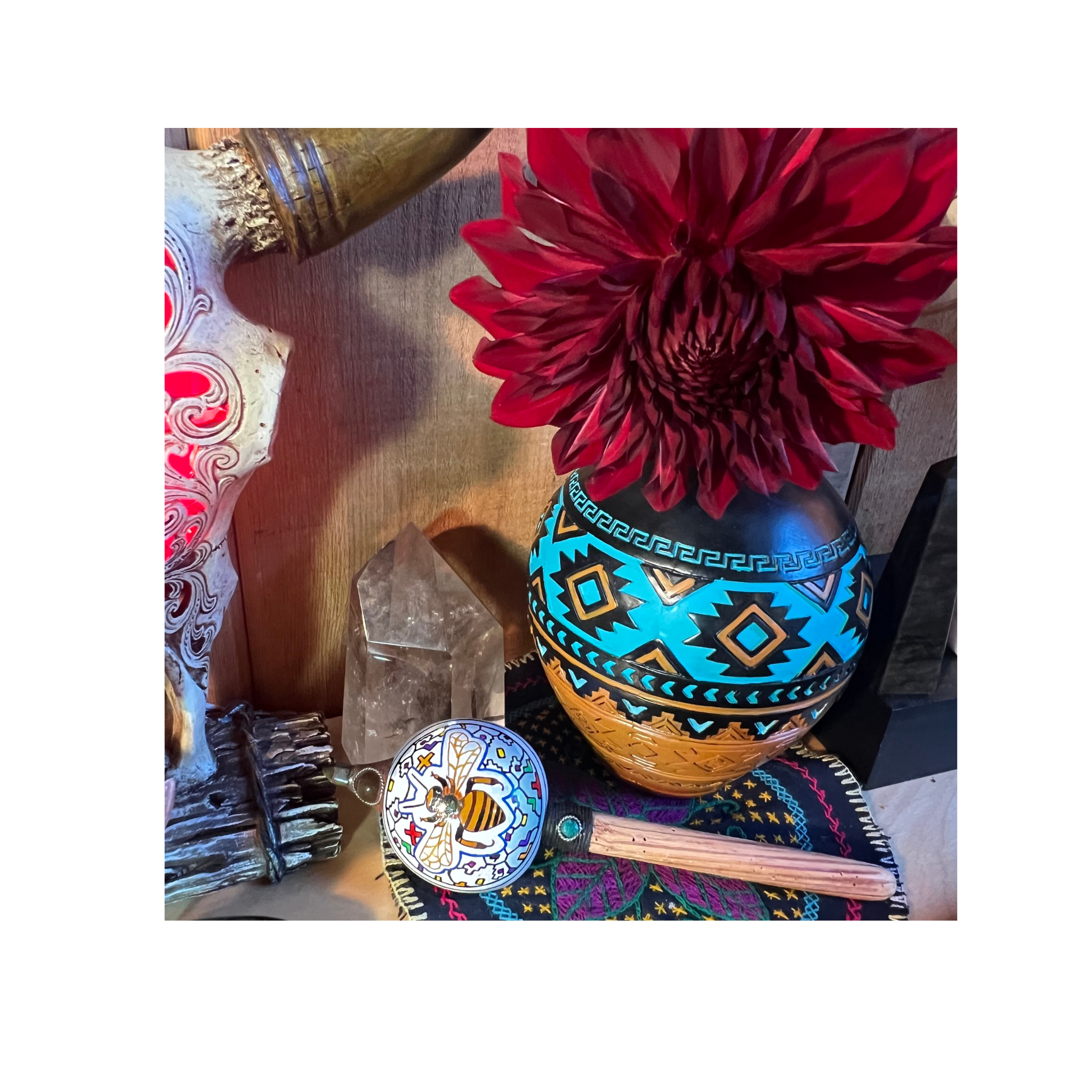 We work with natural, sustainable materials whenever possible, honoring the land and the ecosystems that support our collectives and our offerings.