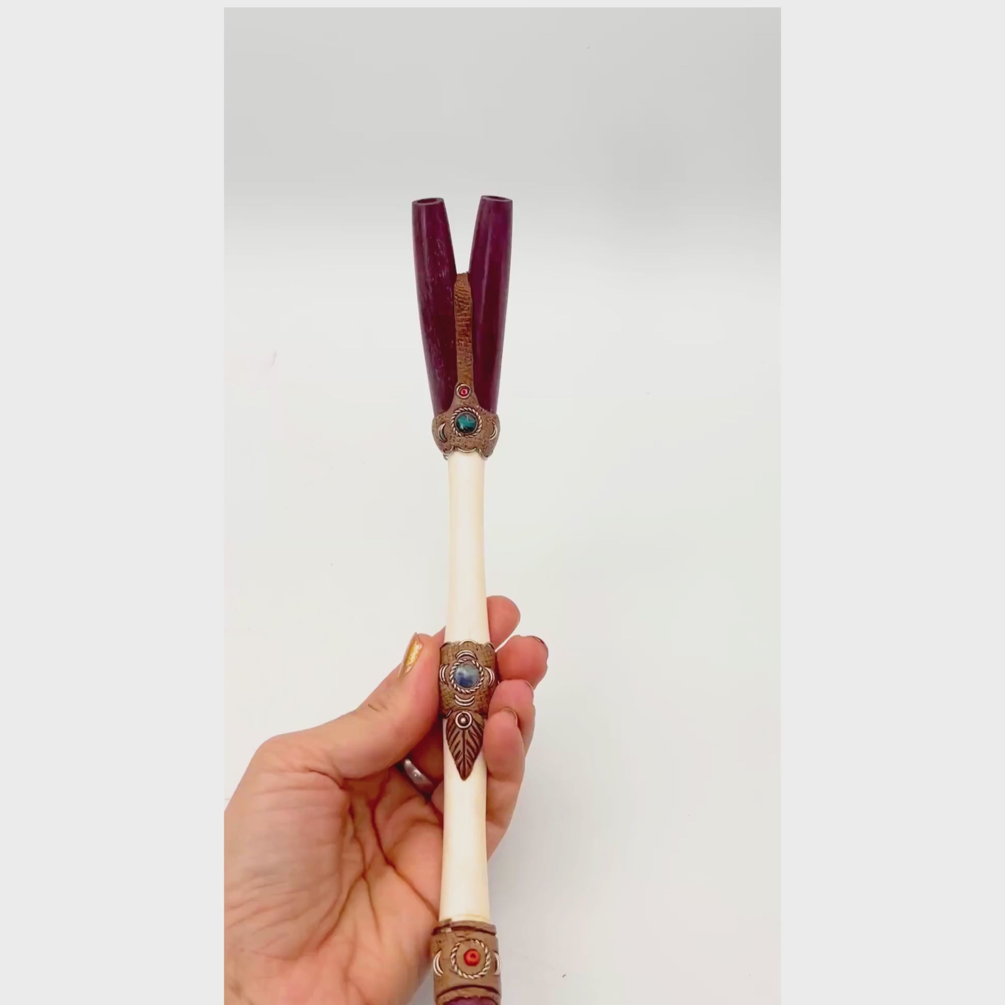 This tepi is unique for its double sided application. Unlike most tepis, this tepi has two nostril applicators which allows for the rappeh to be blown through both nostrils simultaneously