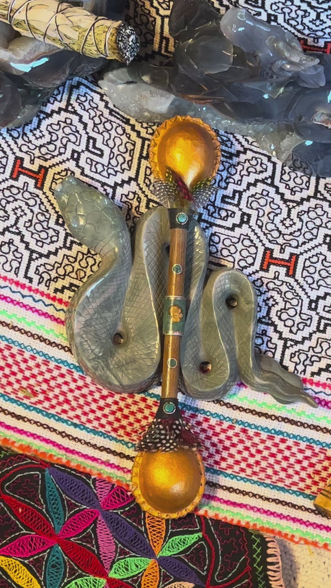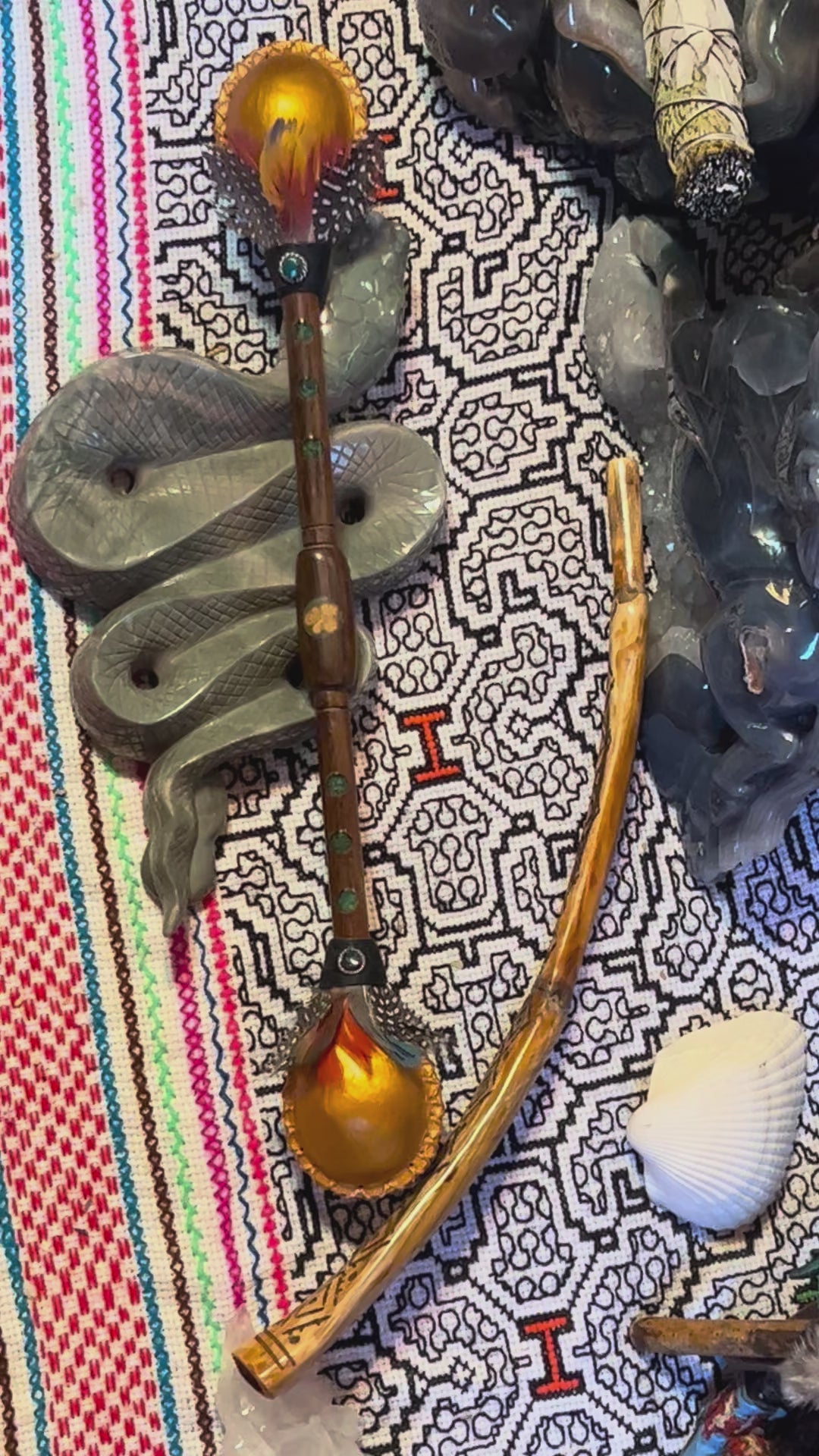 A refined creation from our lead designer, developed as a counterpart to the Spirit of Four Directions Shaker. This model is handcrafted by our collective in Peru from recycled black wood of the Amazon rainforest a sustainable material repurposed from larger household projects. It carries a crisp, papery, and pure sound that makes it an ideal instrument for ceremony, music, or any setting that calls for clear vibration and movement.